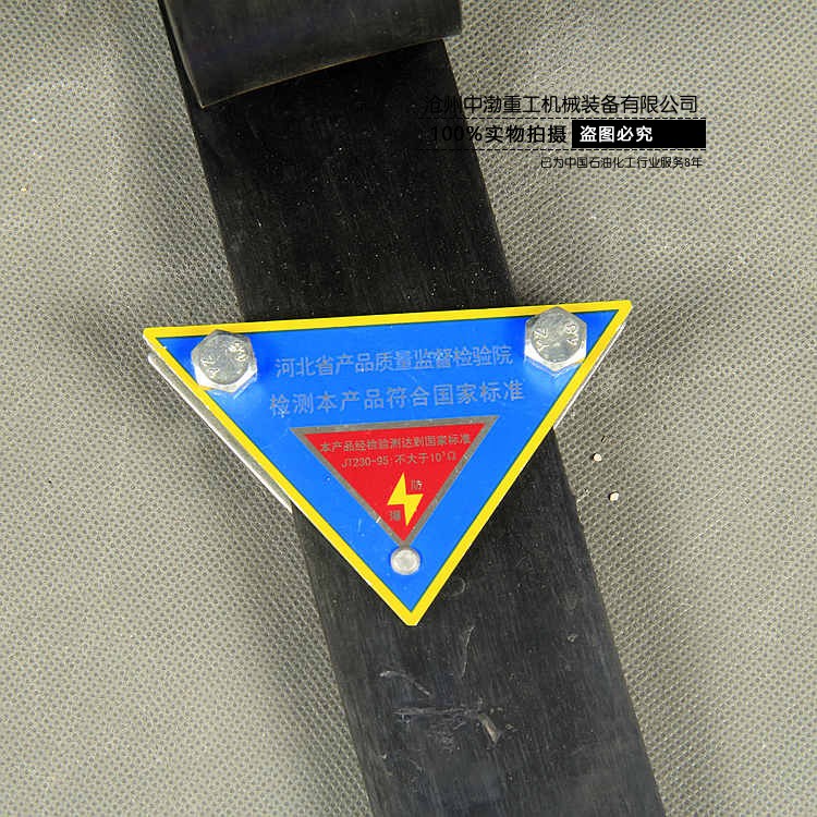 產(chǎn)品使用范圍:運輸化學危險品的槽罐車輛其后廂大架子上安裝汽車導靜電橡膠拖地帶,防止車輛因靜電產(chǎn)生火災爆炸事故。該產(chǎn)品制作工藝采用國家標準規(guī)定,長度為1.6米,寬度為5.5厘米,厚度為0.8厘米,采用工業(yè)輪胎橡膠和銅芯線,硫化機壓模成型,連接夾扣全部采用鋼板模具沖壓,產(chǎn)品美觀、耐用、質(zhì)量上佳.一次性安裝在車架子上,與地面接觸,確保安全可靠。