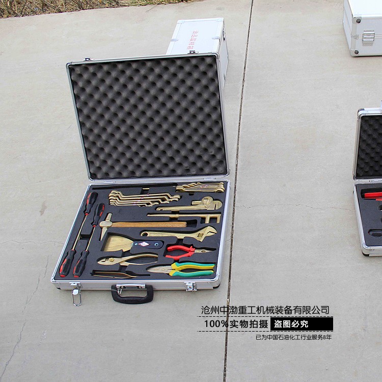 公司生產(chǎn)的防爆工具箱種類齊全,包括:加油站用組合工具箱、油庫(kù)用組合工具箱、天然氣用組合工具箱、礦山搶險(xiǎn)用組合工具箱、檢維修用組合工具箱、成品油計(jì)量工具箱等。 工具箱規(guī)格:7件套、10件套、12件套、16件套、24件套、30件套、32件套、36件套、42件套、50件套、56件套、100件套等。公司還可以根據(jù)客戶的實(shí)際工作需要組合常用的防爆工具套裝。 公司生產(chǎn)的防爆工具有400余個(gè)系列近萬(wàn)種規(guī)格。該產(chǎn)品能有效的防止工具與工作物相互摩擦、撞擊時(shí)產(chǎn)生的可燃性爆炸,確保財(cái)產(chǎn)和人身安全。廣泛用于石油、化工、礦山、防恐怖、防磁場(chǎng)、煤礦、采氣、油氣管道、發(fā)電、冶金、航空、儲(chǔ)運(yùn)、制藥、制氣、塑料、化纖、皮革、煙火、爆竹等行業(yè)。