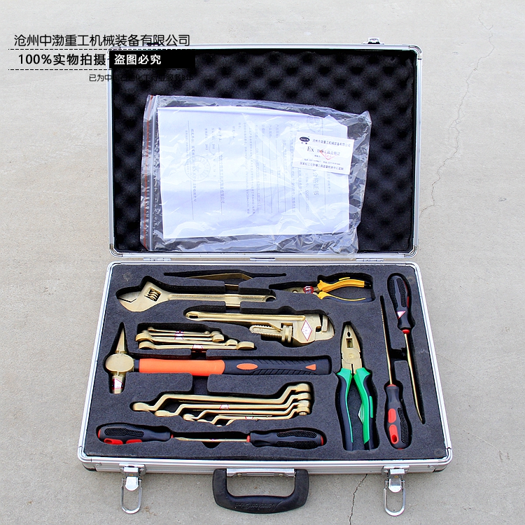 公司生產(chǎn)的防爆工具箱種類齊全,包括:加油站用組合工具箱、油庫用組合工具箱、天然氣用組合工具箱、礦山搶險用組合工具箱、檢維修用組合工具箱、成品油計量工具箱等。 工具箱規(guī)格:7件套、10件套、12件套、16件套、24件套、30件套、32件套、36件套、42件套、50件套、56件套、100件套等。公司還可以根據(jù)客戶的實(shí)際工作需要組合常用的防爆工具套裝。 公司生產(chǎn)的防爆工具有400余個系列近萬種規(guī)格。該產(chǎn)品能有效的防止工具與工作物相互摩擦、撞擊時產(chǎn)生的可燃性爆炸,確保財產(chǎn)和人身安全。廣泛用于石油、化工、礦山、防恐怖、防磁場、煤礦、采氣、油氣管道、發(fā)電、冶金、航空、儲運(yùn)、制藥、制氣、塑料、化纖、皮革、煙火、爆竹等行業(yè)。