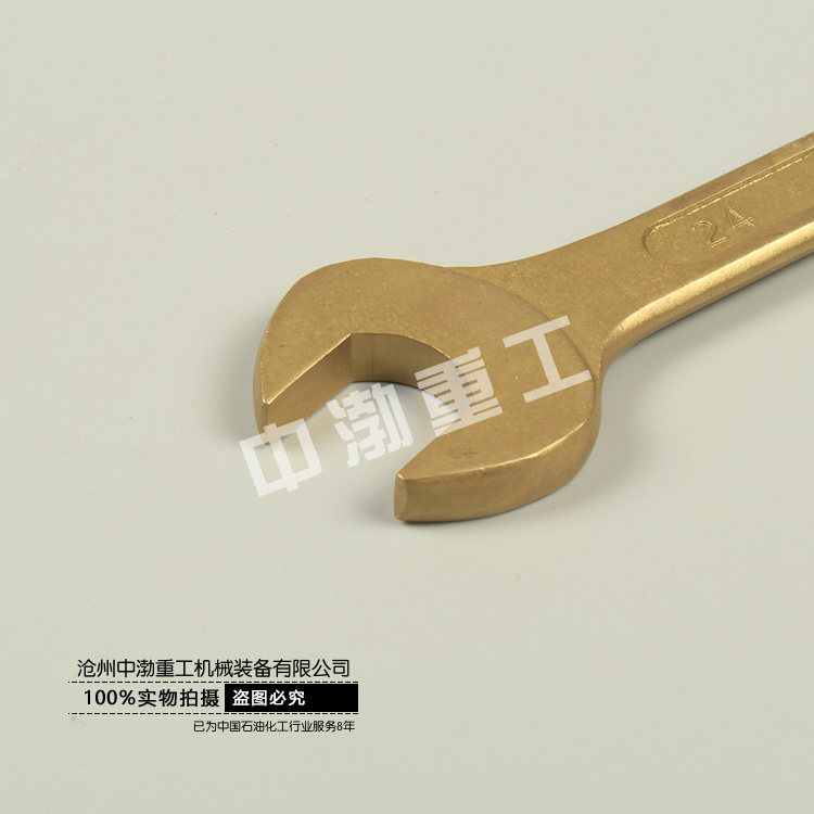 防爆呆扳手詳細介紹 防爆呆扳手優(yōu)點如下: 1、)采用鈹青銅鋁青銅合金鍛造。 2、)經(jīng)整體精加工處理,強度高,韌性好,防爆防磁防腐性能強。 3、)比標準扳手長而厚,更適合專業(yè)人士使用。多適用于緊固或拆卸易燃易爆場所一種或兩種規(guī)格的六角頭、方頭螺栓、螺母。