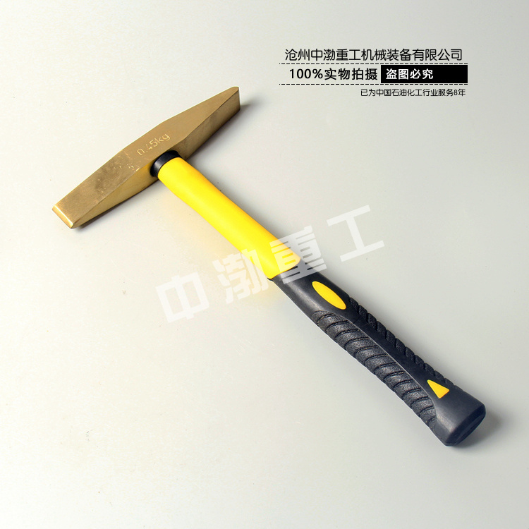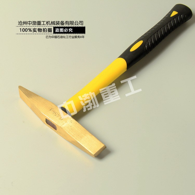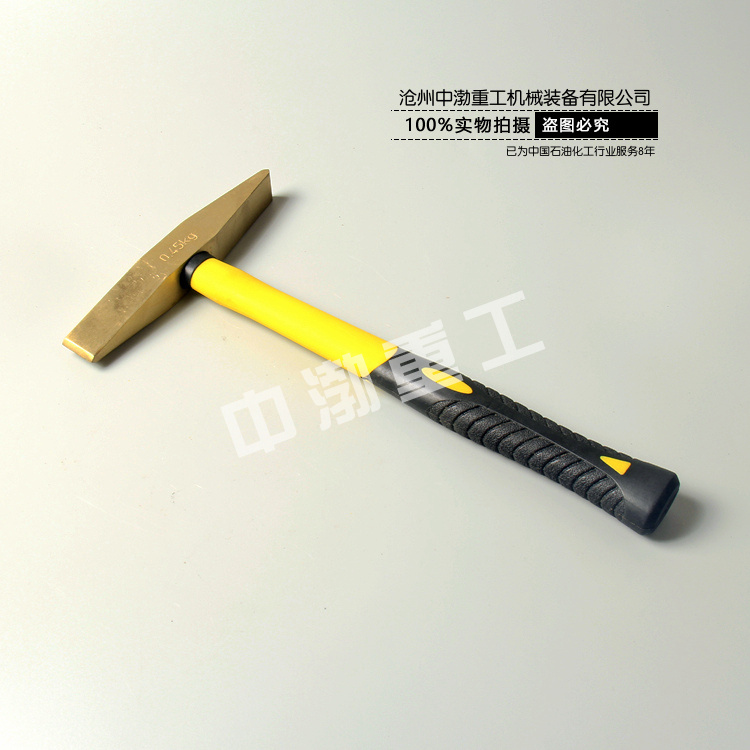 防爆除銹錘有木柄纖維柄兩種,材質(zhì)鋁青銅、鈹青銅制造,有0.22kg、0.34kg、0.45kg等。防爆除銹錘的錘頭兩端做成平刃狀,用來清理設(shè)備及容器上的銹垢。適用范圍:防爆除銹錘,可廣泛應(yīng)用于石油、石化、油站、油庫、采氣、化工、軍工、電力、礦山、電子、鐵路、等潛在火患和爆炸的危險環(huán)境中。