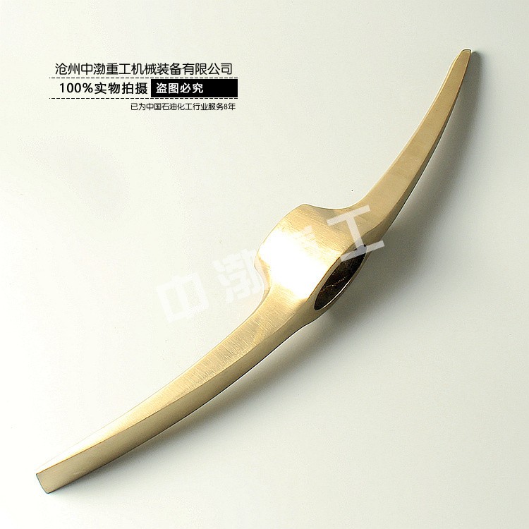 產(chǎn)品簡介:防爆鎬頭,防爆工具的一種,材質(zhì)為鋁青銅(也可為鈹青銅)制作,適用于石油,石化,天然氣,采氣站,加氣站,液化石油氣站,制藥,煤礦等易燃易爆場所。也有稱之為無火花工具。