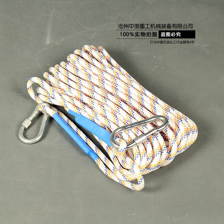 目前使用的救生繩主要是精制麻繩,繩的直徑為6毫米~14毫米,長(zhǎng)度為15米~30米,消防員用耐火救生繩通常用2.6mm航空鋼絲包芯。通常將直徑小的救生繩稱(chēng)為拋繩、引繩或標(biāo)繩,將直徑大的救生繩稱(chēng)為安全繩。