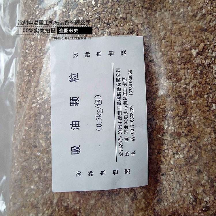 吸附顆粒顆粒內部呈多微孔狀結構,對柴油、汽油、機油、二號浮選油、甲苯、二甲苯、煤油、硝苯、甲醛、甲醇、乙醇等泄漏污染物具有很強的吸附能力,能吸附相當于其重量6倍的污染物液體(每公斤吸液顆??晌郊s5-6公斤的油類及化學液體),為陸上及海上油類泄漏污染應急吸液處理提供了一種成本低廉、環(huán)保的清理方案。